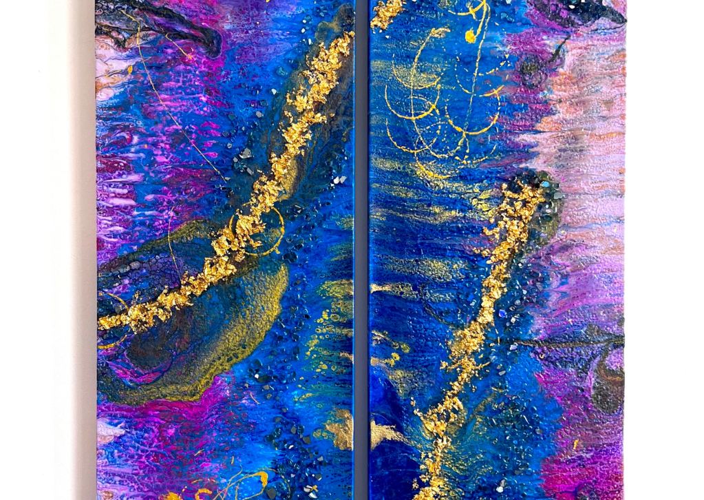 Sara Bastante, por su parte, continuó sorprendiendo a los visitantes con sus paisajes de ensueño. Sus obras, cargadas de azules cerúleos, relieves y manchas, transportaron a los espectadores a un mundo onírico, enriqueciendo la exposición con su particular estilo que mezcla texturas y colores de manera evocadora.