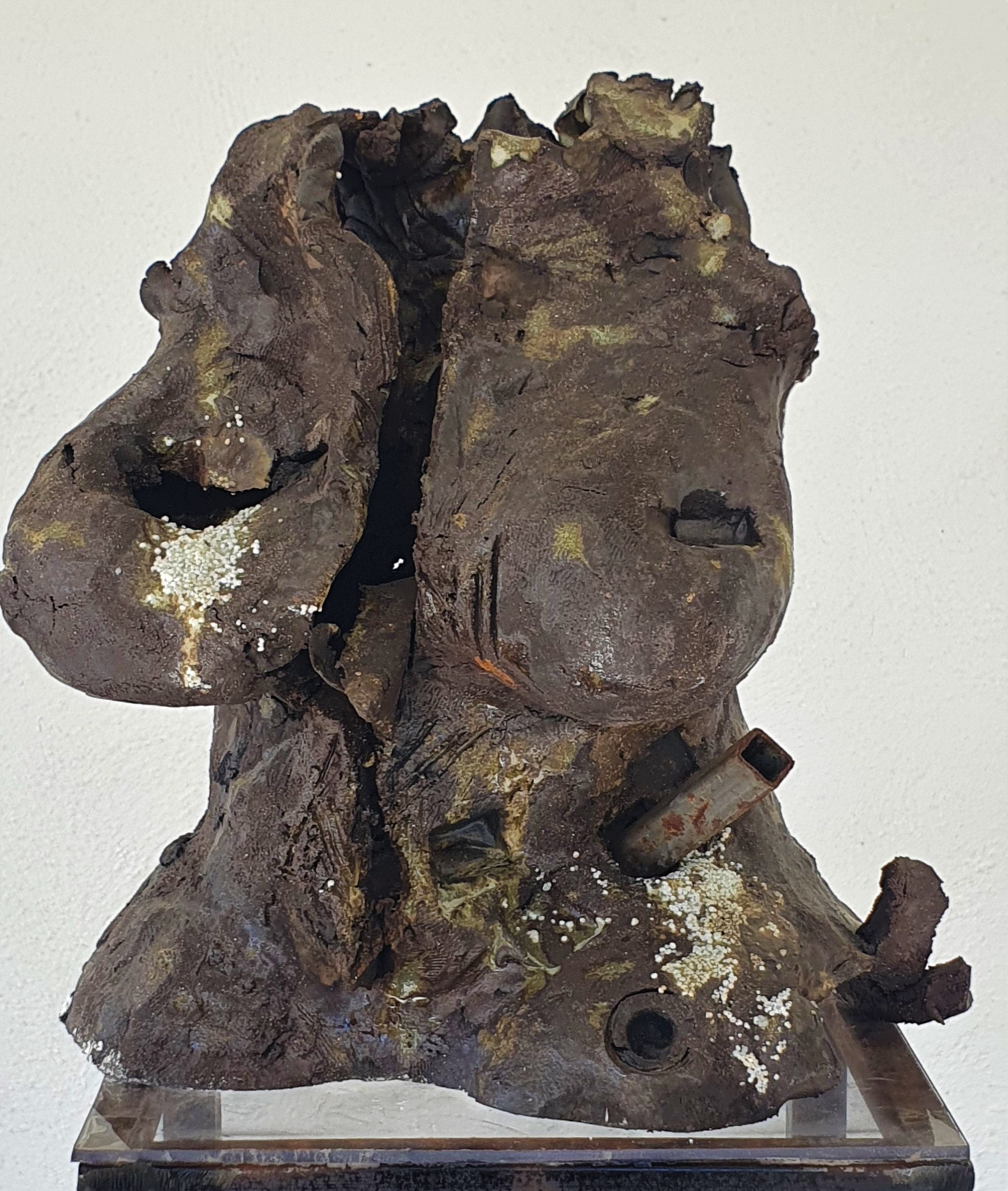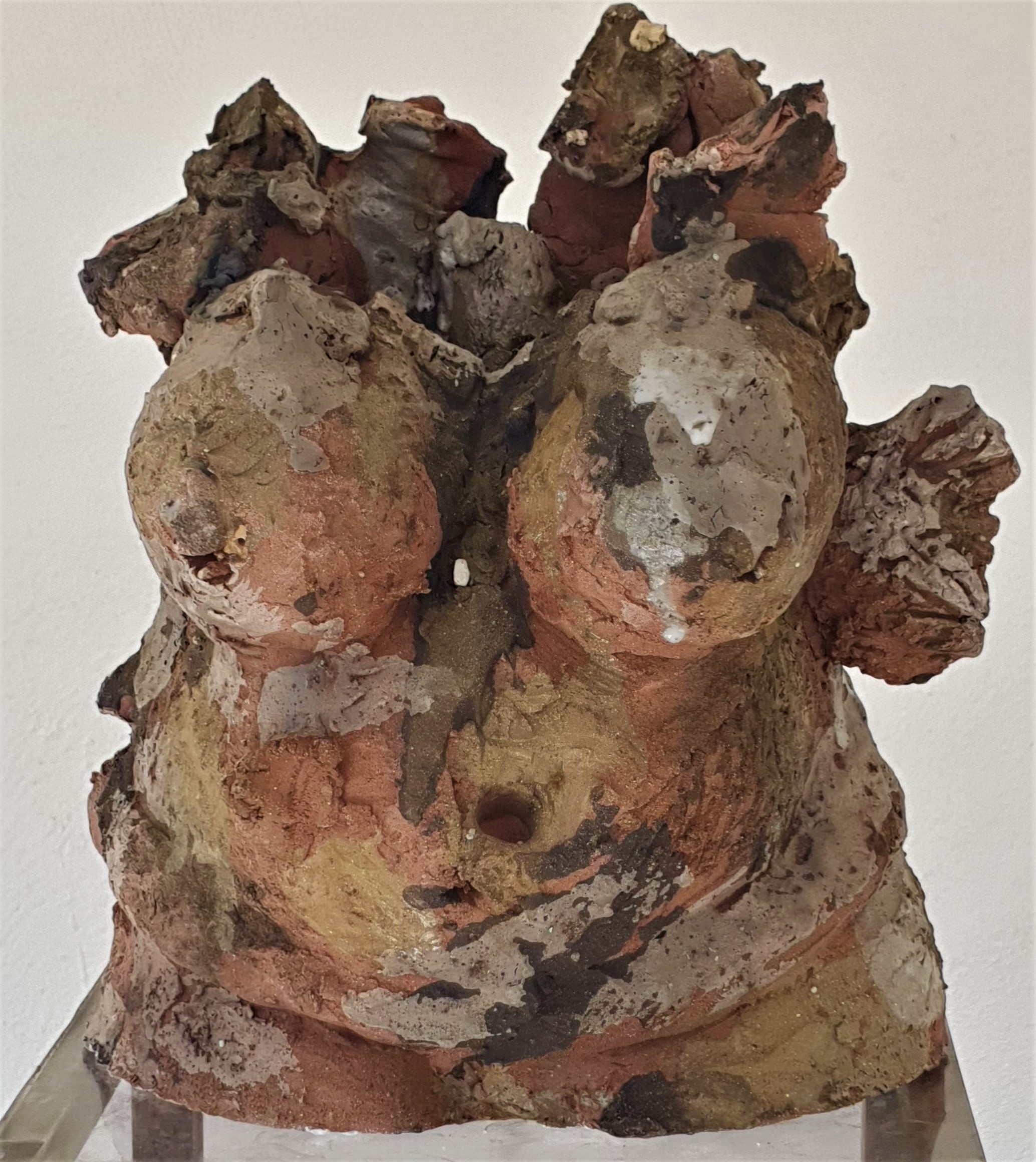 Escultora francesa, Andrée Collin utiliza gres, arcillas, porcelana y leche de porcelana para explorar la fragilidad y fuerza del cuerpo humano. Sus piezas, trabajadas con altas temperaturas y óxidos, revelan texturas que evocan cicatrices y marcas del tiempo. Con una paleta que oscila entre el lila y el negro, Collin plasma la belleza oculta en las heridas físicas y emocionales, invitándonos a reflexionar sobre la vulnerabilidad y la resistencia humanas.