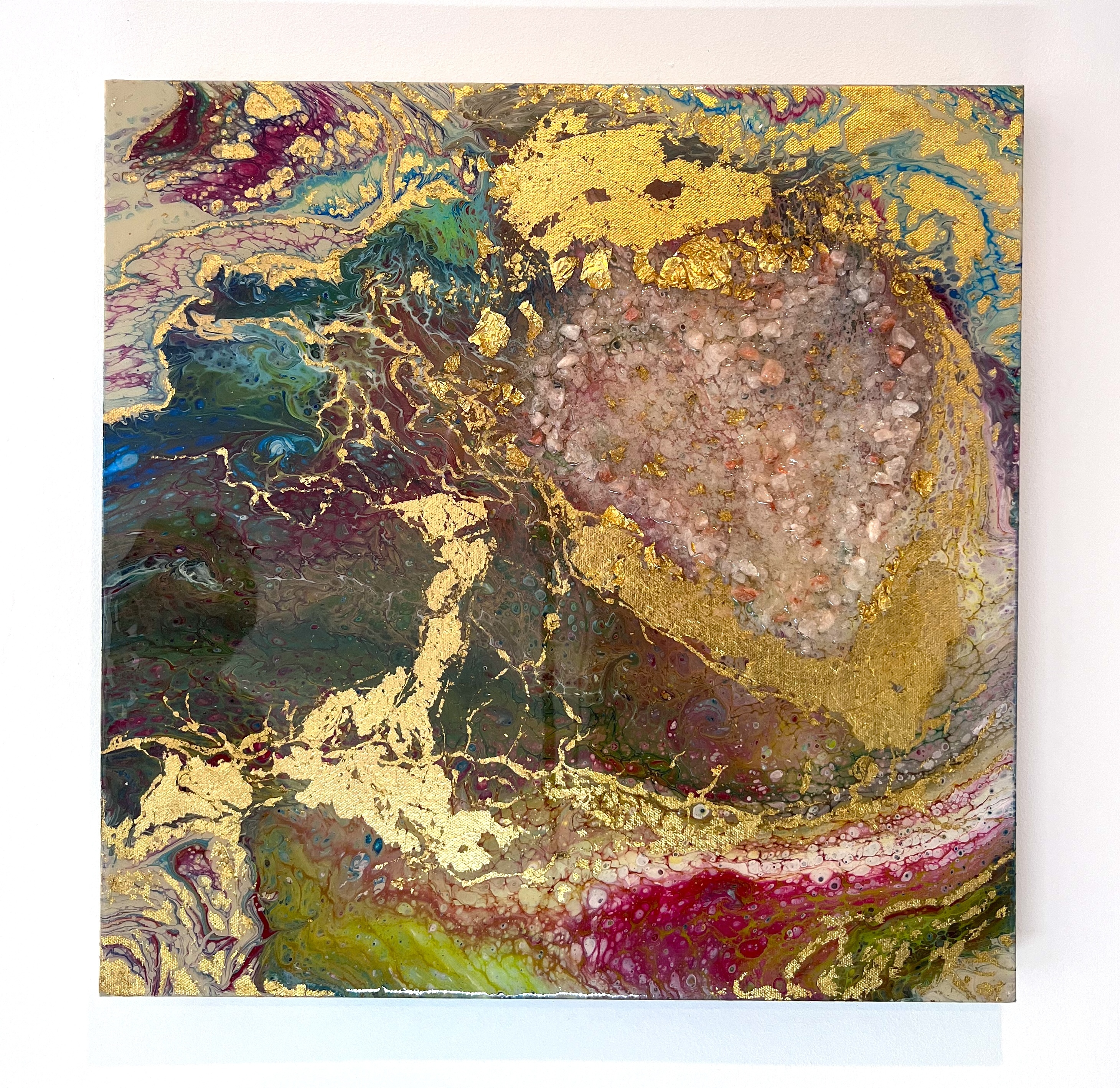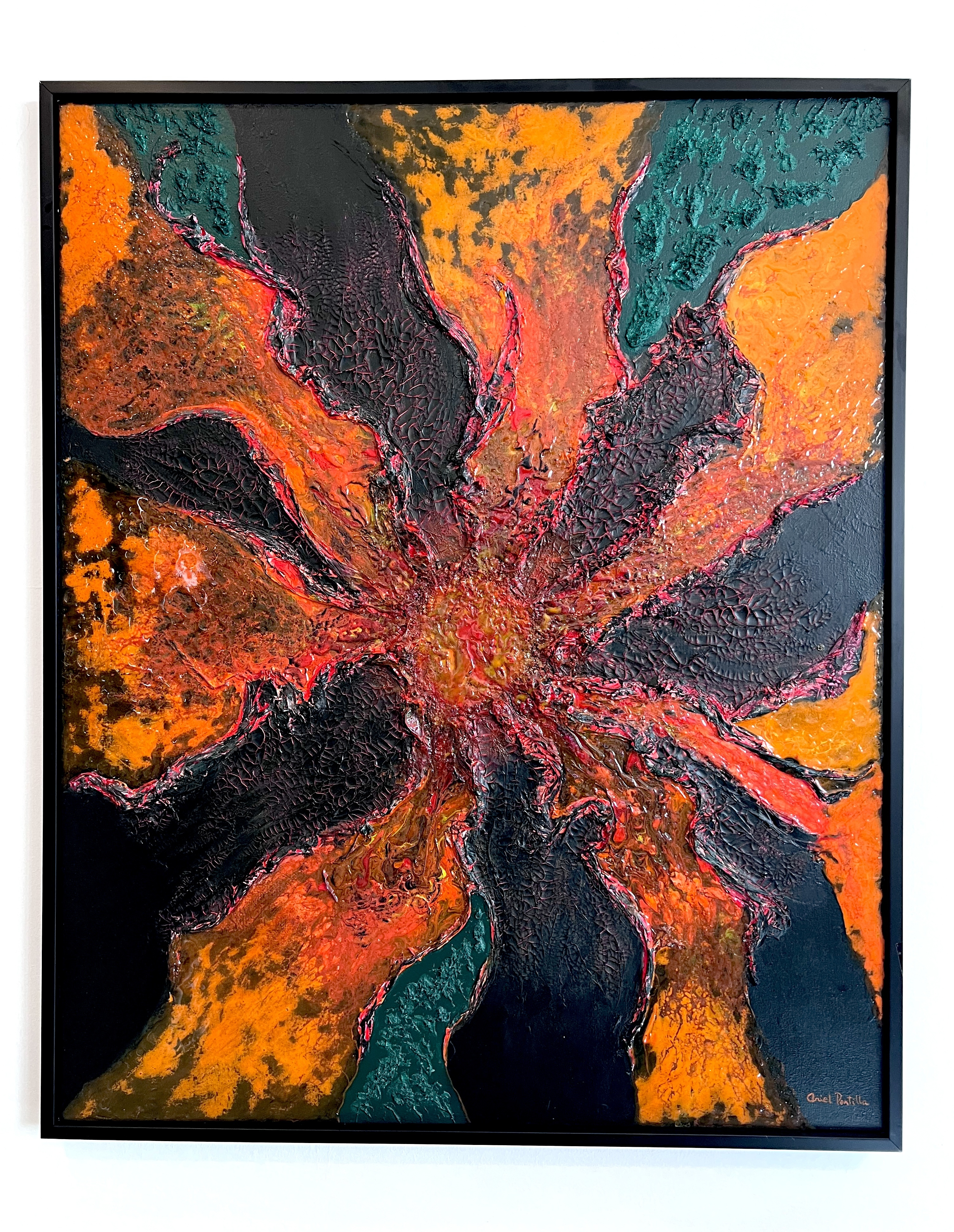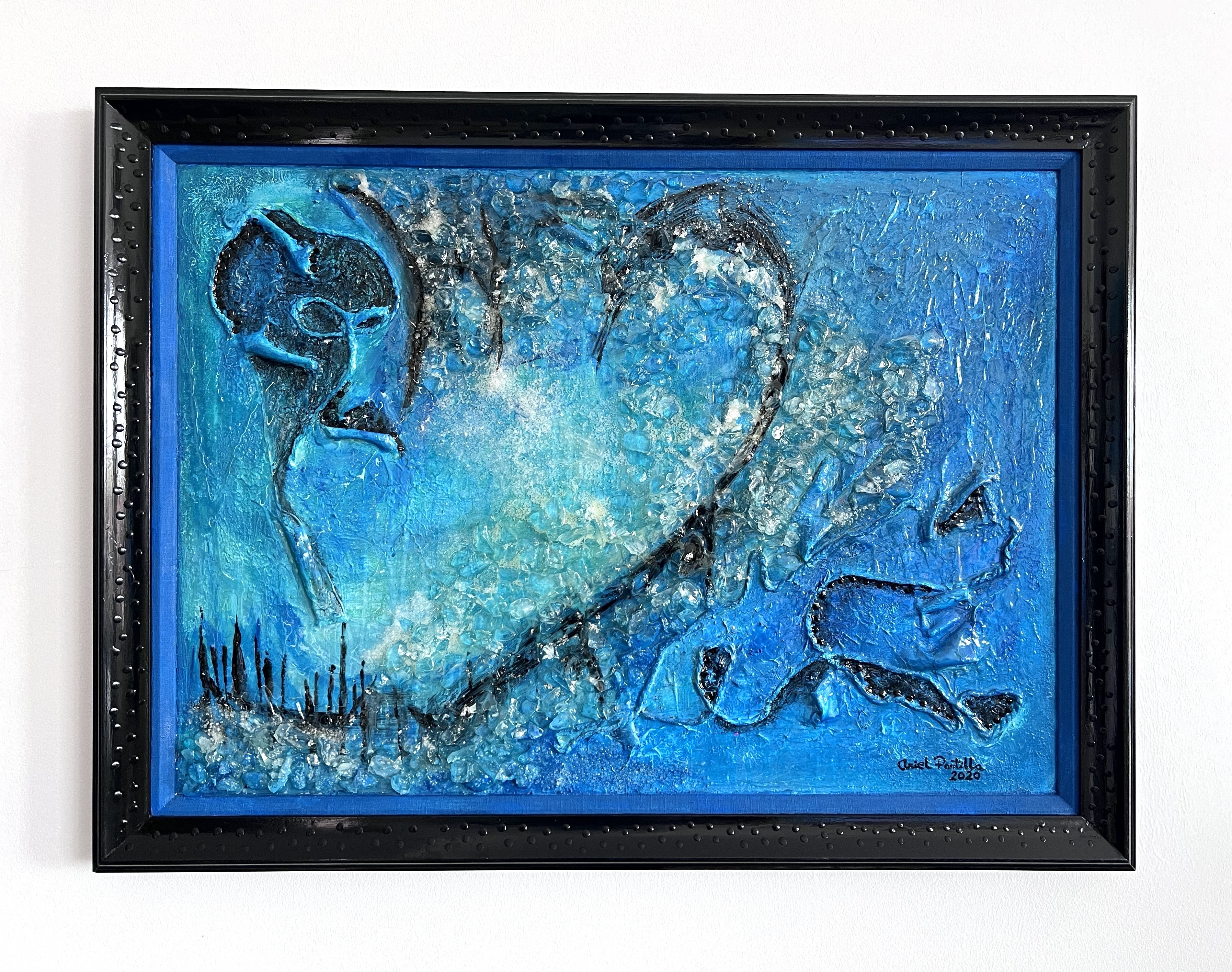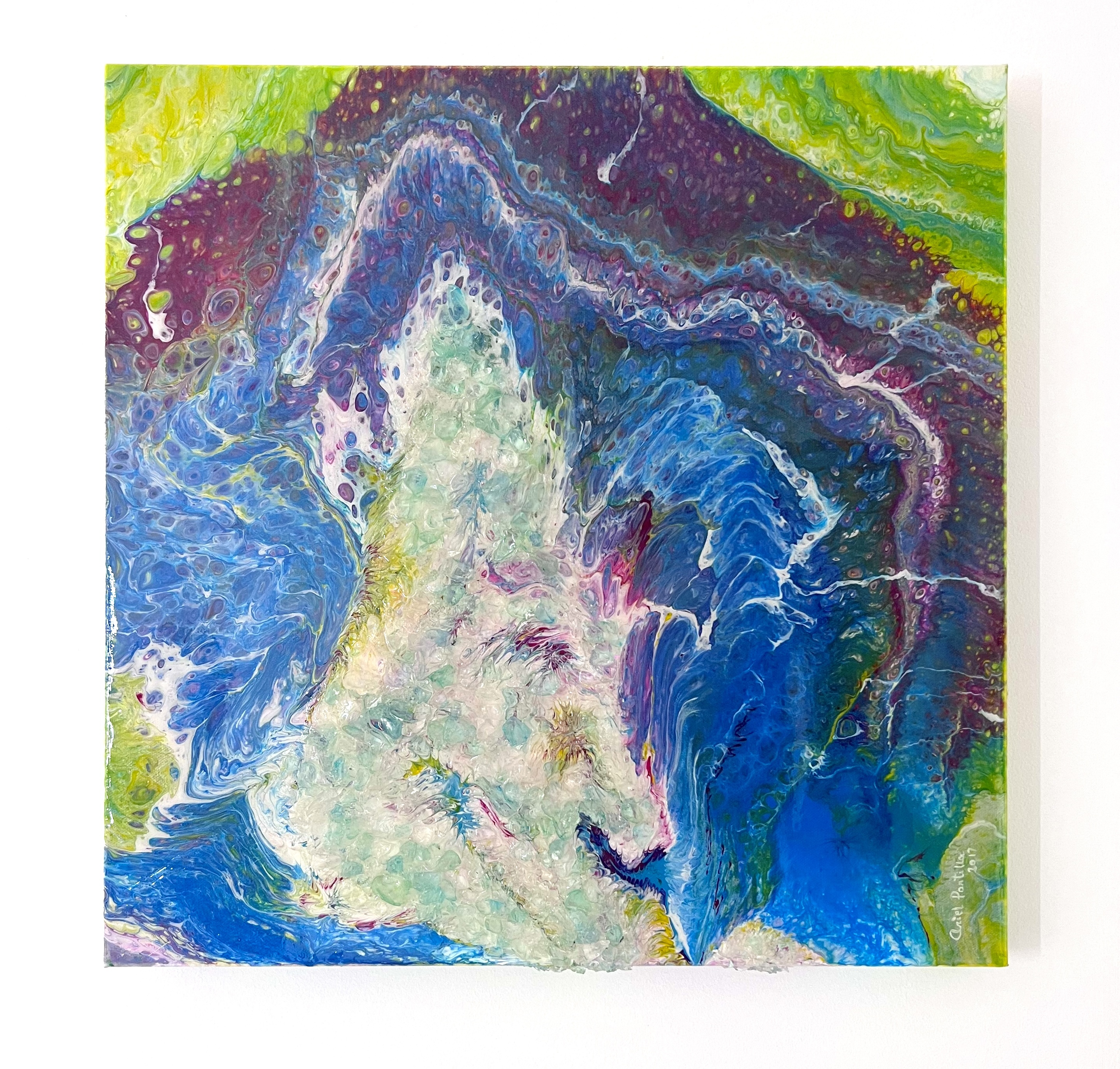 La obra de Ariel Portilla invita a explorar la interconexión entre la vida, la energía y el entorno natural. A través de la técnica meticulosa de resina, el artista da vida a formas orgánicas que parecen fluir y vibrar con una energía propia. Caracterizada por el uso abundante de resina, cristales y elementos naturales, la obra crea una textura única que transmite una sensación de movimiento constante. La transparencia y el brillo de la resina resaltan la vitalidad de las formas, mientras que los cristales y elementos naturales aportan una dimensión sensorial. Con esta colección, Portilla nos invita a reflexionar sobre nuestra conexión con la naturaleza y la importancia de preservarla, recordándonos la belleza y complejidad de la vida y la energía transformadora que fluye a través de ella.